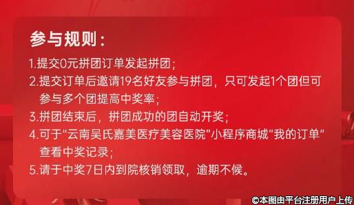 昆明吳氏嘉美拼團(tuán)活動(dòng) 20人成團(tuán)0元抽好禮