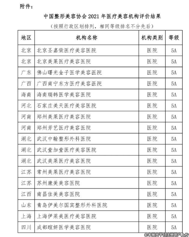 2021年醫(yī)療美容機構(gòu)評價結(jié)果公示?!47家達到A等級標(biāo)準(zhǔn),其中5A級30家