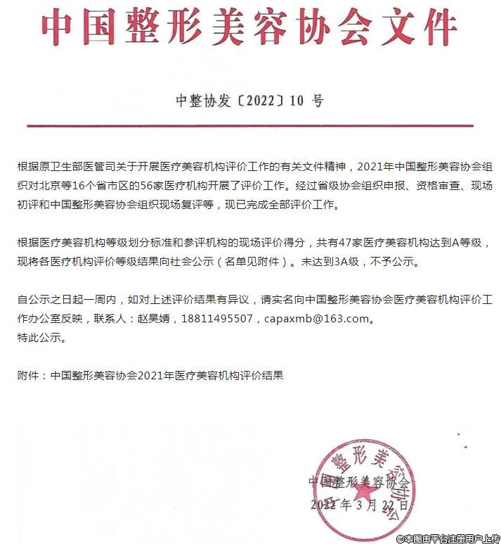 3月22日,中國整形美容協(xié)會公布2021年醫(yī)療美容機構(gòu)等級評價結(jié)果。根據(jù)醫(yī)療美容機構(gòu)等級劃分標(biāo)準(zhǔn)和參評機構(gòu)的現(xiàn)場評價得分,47家醫(yī)療美容機構(gòu)達到A等級標(biāo)準(zhǔn)。
