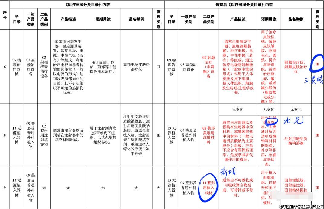 此次調(diào)整,三個“二級產(chǎn)品類別”涉及醫(yī)美(詳見圖注):