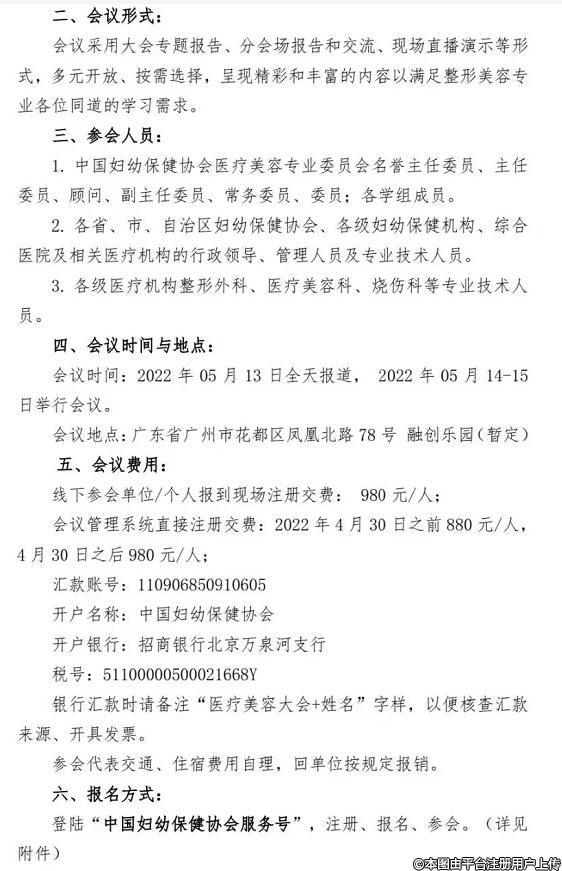 屆時全國整形美容行業(yè)同仁將齊聚盛會,共享交流與研討的豐碩果實?,F(xiàn)將會議有關(guān)事宜通知如下: