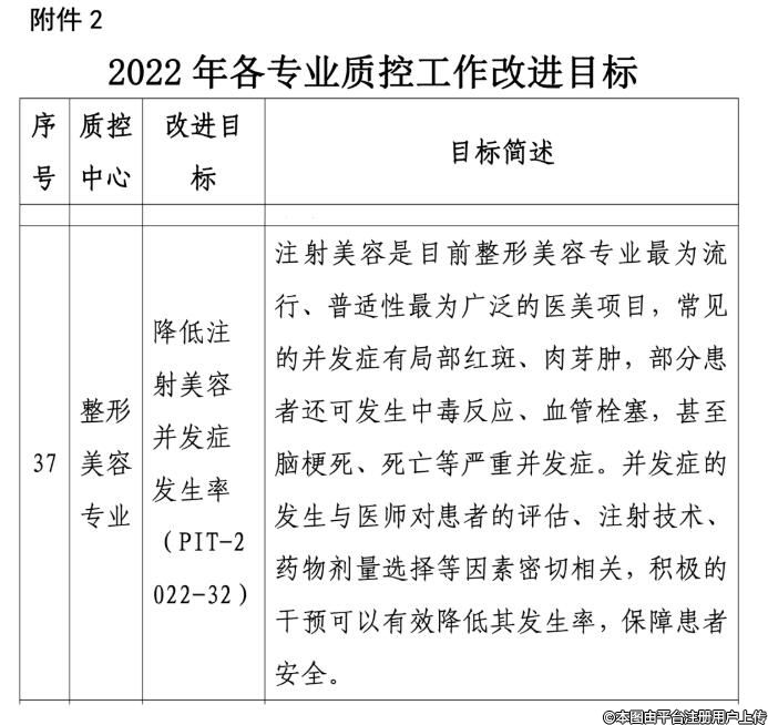 2022年3月,國(guó)家衛(wèi)生健康委辦公廳印發(fā)《2022年國(guó)家醫(yī)療質(zhì)量安全改進(jìn)目標(biāo)》,其中對(duì)整形美容專業(yè)提出了“降低注射美容并發(fā)癥發(fā)生率”的改進(jìn)目標(biāo)。