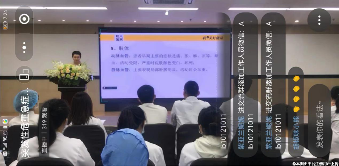 會(huì)上,美容外科脂肪整形專業(yè)組袁野主任和王學(xué)納護(hù)士長(zhǎng)分別深入講解了《脂肪栓塞的預(yù)防、診斷、救治和應(yīng)急預(yù)案》、《空氣栓塞的預(yù)防、診斷、救治和應(yīng)急預(yù)案》。本次培訓(xùn)線上觀看學(xué)習(xí)人數(shù)共計(jì)381人,線下60多人,線上線下頻頻互動(dòng),氣氛熱烈,獲得了觀眾的一致好評(píng)。