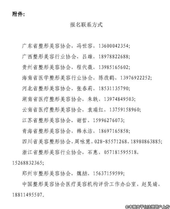 中國整形美容協(xié)會(huì)醫(yī)療美容機(jī)構(gòu)評價(jià)工作辦公室,趙昊婧,18811495507。