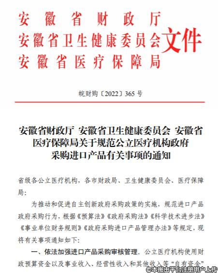 此次安徽是動真格了,直接提前法出通知,明確提出,公立醫(yī)療機(jī)構(gòu)使用財政預(yù)算資金以及事業(yè)收入、經(jīng)營性收入和其他收入等“自有資金”開展采購活動,應(yīng)當(dāng)嚴(yán)格執(zhí)行政府采購關(guān)于進(jìn)口審核的有關(guān)規(guī)定。單項或批量采購預(yù)算達(dá)到政府采購分散采購限額標(biāo)準(zhǔn),確需采購進(jìn)口產(chǎn)品的,實行審核管理。