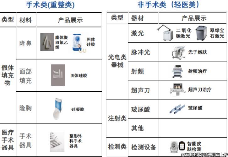 醫(yī)美器材即為做醫(yī)美的儀器、設(shè)備、材料等,可分為手術(shù)類器械和非手術(shù)類器械。按照風(fēng)險(xiǎn)等級(jí)分類,可以分為I類、II類、III類。醫(yī)美器械屬于醫(yī)療器械。嚴(yán)格意義商來(lái)將,只有在國(guó)家藥品監(jiān)督管理局備案過(guò)的器械才能被稱為醫(yī)美器械。