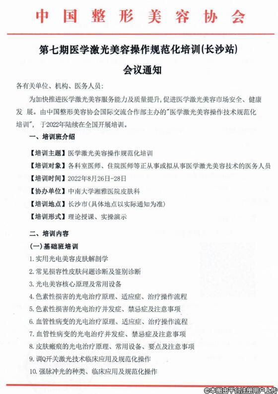 第七期醫(yī)學(xué)激光美容操作規(guī)范化培訓(xùn)(長(zhǎng)沙站) 會(huì)議通知
