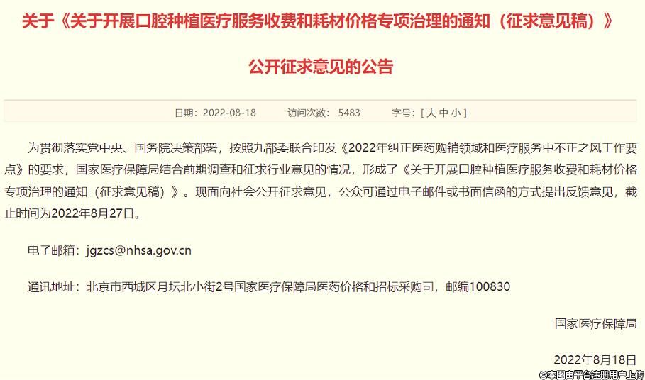 近日,國醫(yī)保出手了,要對口腔種植服務收費和耗材價格征求意見。廣納人們的意見,對收費不規(guī)范、費用負擔重等困擾民眾痛點進行整肅。