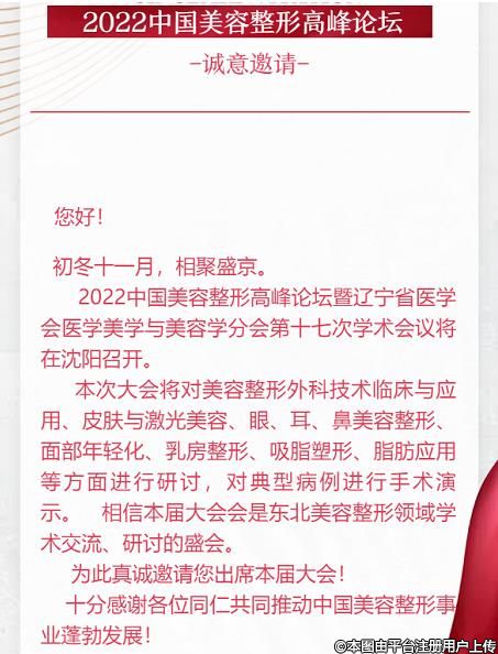 2022中國美容整開高峰論壇暨遼寧省醫(yī)學(xué)會醫(yī)學(xué)美學(xué)與美容學(xué)分會第十七次學(xué)術(shù)會議邀請函