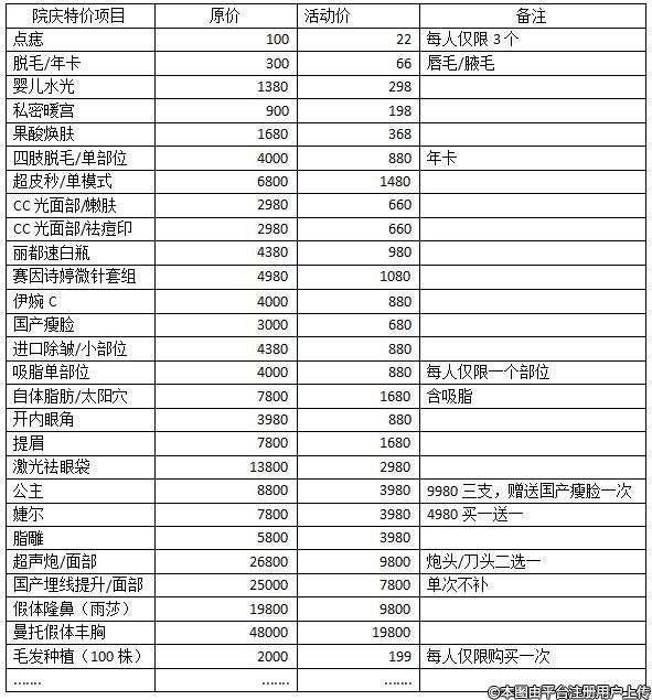 超多爆款項(xiàng)目院慶特價(jià)