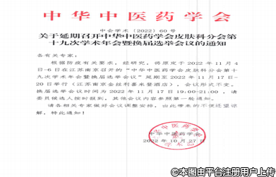 延期通知 中華中醫(yī)藥學(xué)會(huì)皮膚科分會(huì)第十九次學(xué)術(shù)年會(huì)暨換屆選舉會(huì)議
