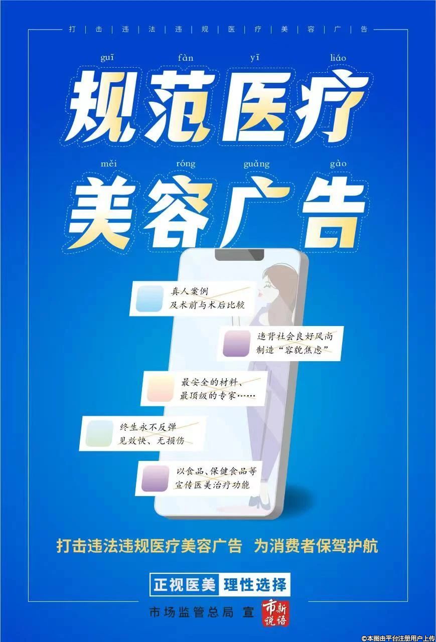 昨日,市場監(jiān)管總局在其微信公眾號發(fā)布圖片信息:“規(guī)范醫(yī)療美容廣告,打擊違規(guī)違法醫(yī)療美容廣告,為消費者保駕護航”。