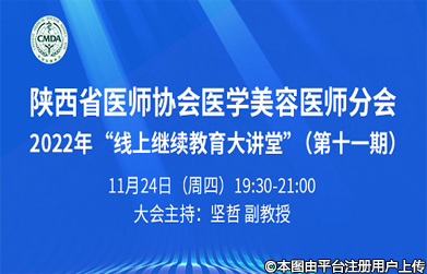 直播預(yù)告 陜西省醫(yī)師協(xié)會(huì)醫(yī)學(xué)美容醫(yī)師分會(huì) 2022年“線上繼續(xù)教育大講堂” (第十一期)