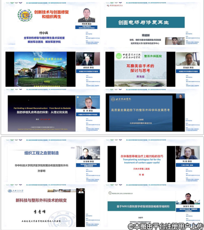 開幕式結(jié)束后,進(jìn)入上午大會主題報告。解放軍總醫(yī)院生命科學(xué)學(xué)院院長付小兵院士,陸軍特色醫(yī)學(xué)中心蔣建新院士,中國醫(yī)學(xué)科學(xué)院整形外科醫(yī)院祁佐良教授、蔣海越教授、欒杰教授,北京協(xié)和醫(yī)院王曉軍教授、上海交通大學(xué)醫(yī)學(xué)院附屬第九人民醫(yī)院李青峰教授、華中科技大學(xué)同濟(jì)醫(yī)學(xué)院附屬協(xié)和醫(yī)院孫家明教授、蘭州大學(xué)第二醫(yī)院劉毅教授以及陸軍軍醫(yī)大學(xué)第一附屬醫(yī)院張家平教授等著名專家教授圍繞組織修復(fù)前沿技術(shù)、眼耳整形新技術(shù)、脂肪移植關(guān)鍵技術(shù)、整形外科學(xué)科高質(zhì)量發(fā)展、血管組織工程、整形外科新技術(shù)蛻變以及頦頸部瘢痕畸形美學(xué)修復(fù)原則等主題作了精彩學(xué)術(shù)報告,線上會議氣氛熱烈。