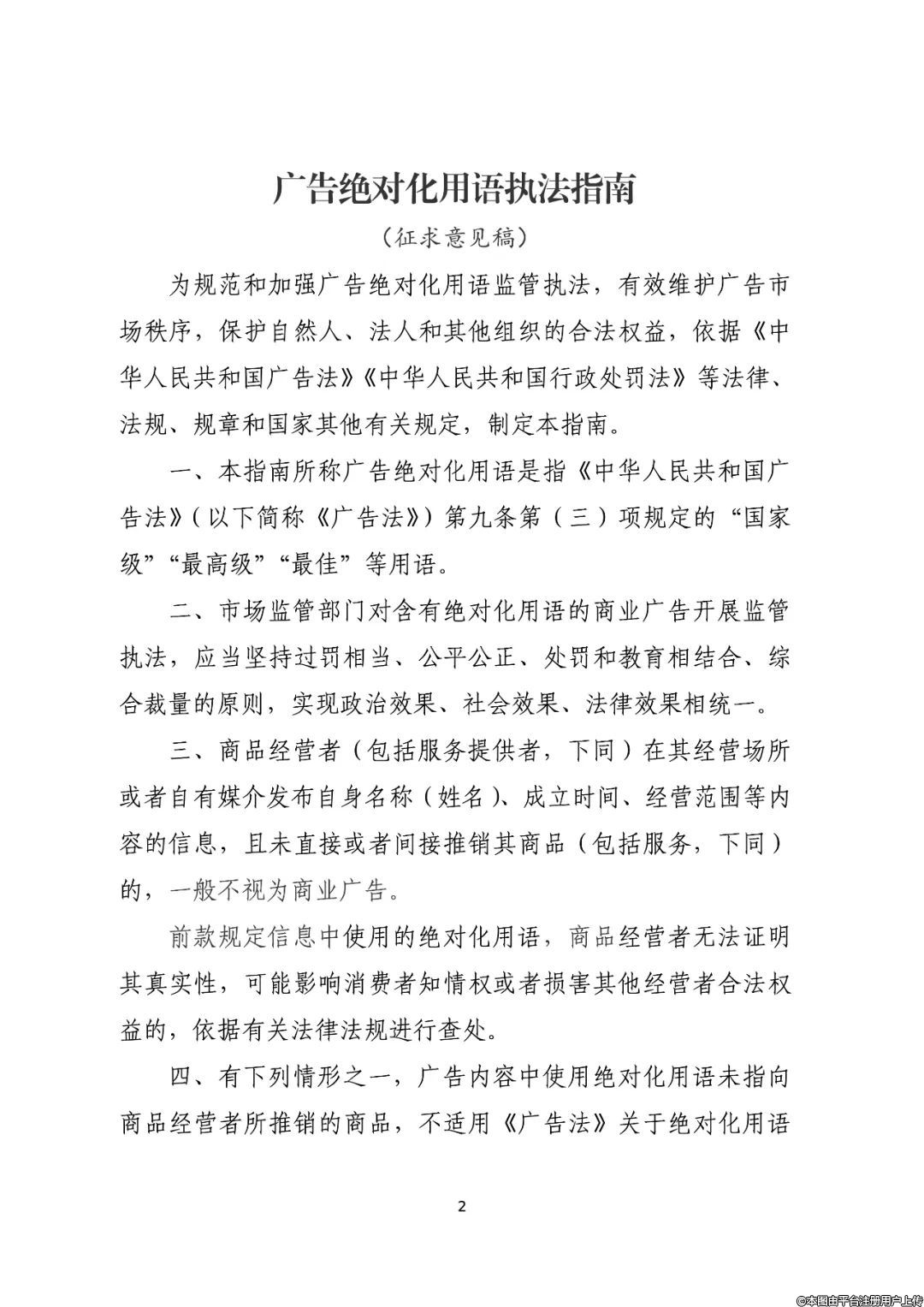 市監(jiān)總局發(fā)布《廣告絕對化用語執(zhí)法指南(征求意見稿)》