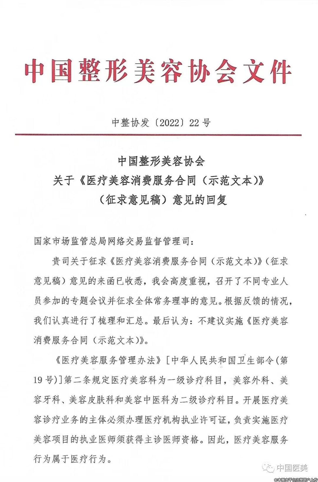 中整協(xié):不建議實施《醫(yī)療美容消費服務(wù)合同(示范文本)》