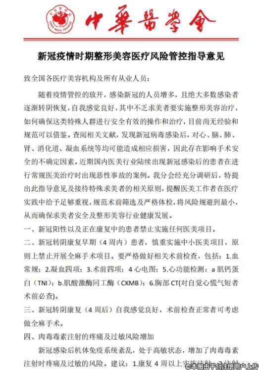 附近:《新冠疫情時(shí)期整形美容醫(yī)療風(fēng)險(xiǎn)管控指導(dǎo)意見(jiàn)》