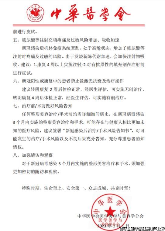 隨著新冠肺炎疫情管控的放開(kāi),后續(xù)將不可避免地對(duì)新冠病毒感染者實(shí)施醫(yī)療整形美容的治療和操作,為確保醫(yī)療整形美容診療安全,中華醫(yī)學(xué)會(huì)印發(fā)了《關(guān)于新冠疫情時(shí)期整形美容醫(yī)療風(fēng)險(xiǎn)管控指導(dǎo)意見(jiàn)》?,F(xiàn)轉(zhuǎn)發(fā)給大家,望各有關(guān)醫(yī)療美容機(jī)構(gòu)及從業(yè)人員嚴(yán)格按照指導(dǎo)意見(jiàn)的相關(guān)要求執(zhí)行,在診療中加以重視,務(wù)必盡到告知義務(wù),簽訂知情同意書(shū),規(guī)范術(shù)前篩選及嚴(yán)格體檢,最大程度規(guī)避診療風(fēng)險(xiǎn),確保求美就醫(yī)者的安全及醫(yī)療整形美容行業(yè)的健康發(fā)展。