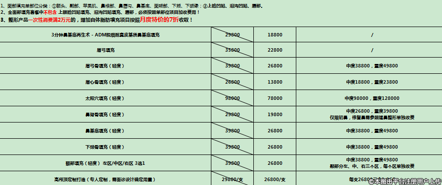 1、開年膨脹禮:預付100元可得價值10000元整形代金券,滿10000元減1000元、滿20000元減2000元、滿30000元減3000元、滿40000元減4000元??膳c儲值、老帶新等其他優(yōu)惠同享!