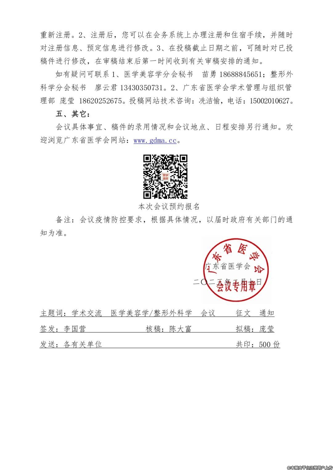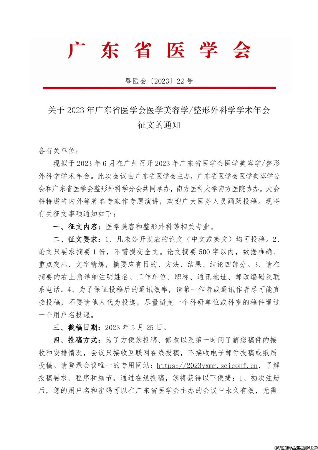 征文通知 2023年廣東省醫(yī)學會醫(yī)學美容學/整形外科學學術年會