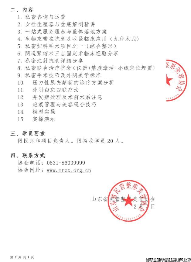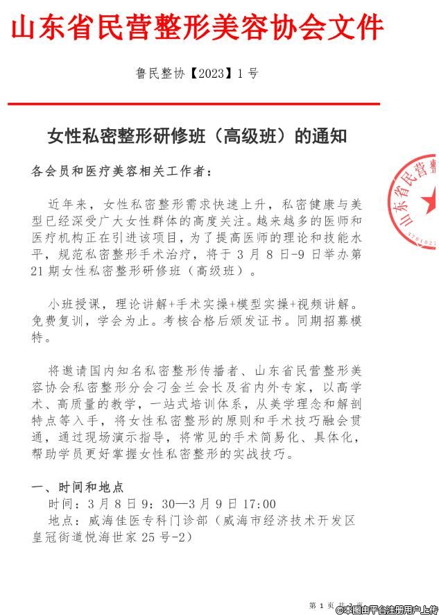 3月8日-9日第21期女性私密整形研修班(高級(jí)班)的通知
