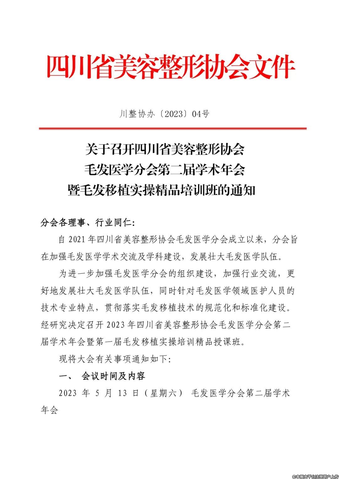 會議通知 四川省美容整形協(xié)會毛發(fā)醫(yī)學(xué)分會第二屆學(xué)術(shù)年會暨毛發(fā)移植實(shí)操精品培訓(xùn)班