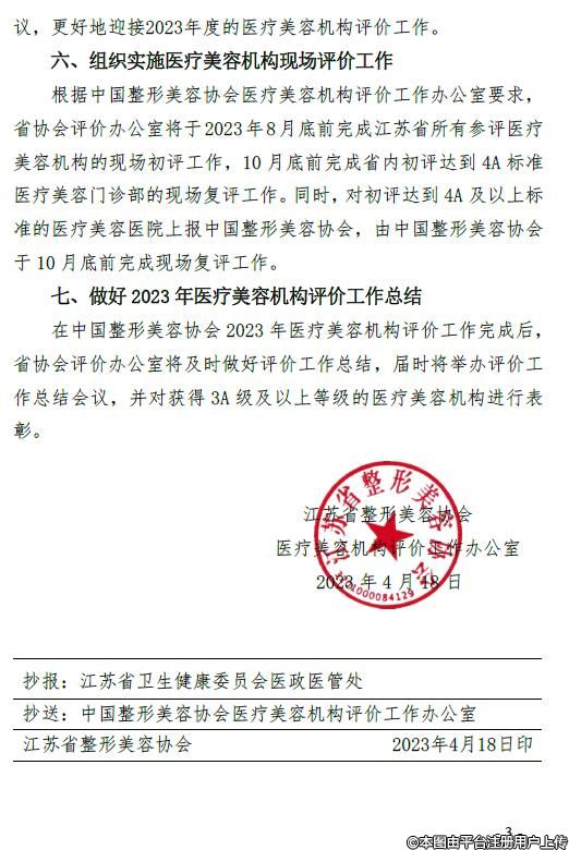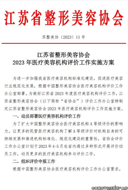 江蘇省整形美容協(xié)會2023年醫(yī)療美容機構評價工作實施方案