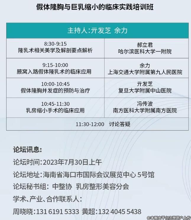 乳房假體隆胸與巨乳縮小培訓(xùn)班由中整協(xié)乳房整形美容分會(huì)承辦,邀請(qǐng)國內(nèi)頂級(jí)臨床一線專家,從臨床實(shí)際出發(fā),注重細(xì)節(jié),結(jié)合臨床實(shí)際問題,以期提高乳房整形從業(yè)人員的臨床診治水平。