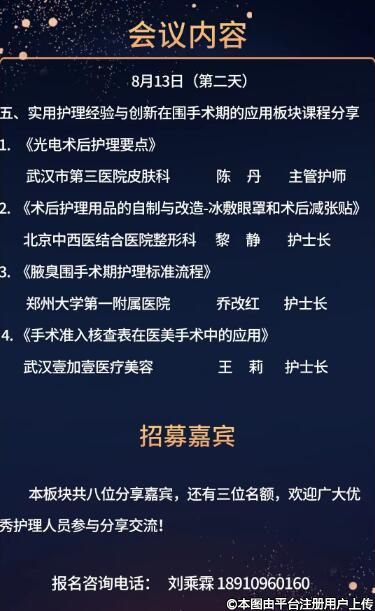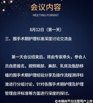 2023年8月12-13日,將在江蘇省中醫(yī)院優(yōu)先啟動《中國醫(yī)療美容風險防控與護理標準》研討會,本次會議除開展專家經(jīng)驗分享外,還會在晚間召開小組討論會,專家與參會成員將共同梳理基層實際需求,制定測評標準等工作,這將是護理崗位人員系統(tǒng)成長的絕佳機會,更是聯(lián)合廣大醫(yī)美機構(gòu)共同推動行業(yè)健康發(fā)展的盛會。
