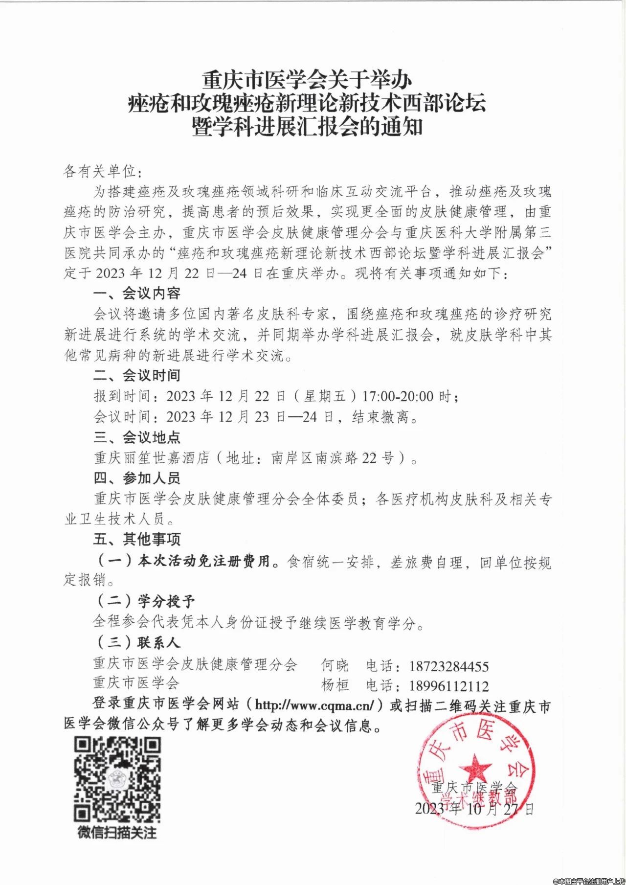 會(huì)議通知 痤瘡和玫瑰痤瘡新理論新技術(shù)西部論壇暨學(xué)科進(jìn)展匯報(bào)會(huì)