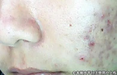 一般表現(xiàn)為初期發(fā)紅后,很快會化膿或者冒白頭,擠出有膿血。部分丘疹再度感染,演化成丘疹型膿皰,一般容易形成凹陷型疤痕。主要是由于微生物積聚造成的炎癥反應。