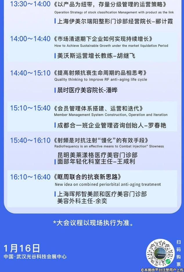 會議期間視博傾情參與,聯(lián)合大會冠名承辦「中國醫(yī)美創(chuàng)新運維大會暨醫(yī)美眾人行之“醫(yī)美機構增長陪跑計劃”」特色論壇,邀請十余位行業(yè)大咖在1月16日全天展開精彩課題分享,聚焦企業(yè)戰(zhàn)略定位、產品運營體系、機構核心競爭力等方面的打造,探索機構持續(xù)增長全新視角,專業(yè)碰撞,干貨輸出,視博與您相約武漢,歡迎您的到來