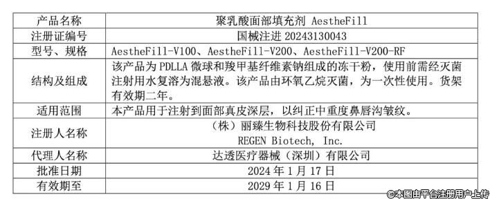 AestheFill產(chǎn)品為韓國知名醫(yī)美企業(yè)REGENBiotech,Inc.研發(fā)的一款“醫(yī)美再生注射劑”,由PDLLA微球和羧甲基纖維素鈉組成。該產(chǎn)品于2014年首次在韓國獲批上市,截至目前已在全球60余個(gè)國家和地區(qū)上市銷售。