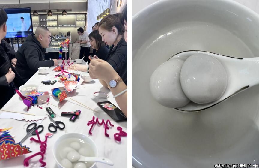 古人稱元宵為“浮圓子”,也有人稱之為“元寶”。南方的元宵與北方的湯圓在做法上略有不同,但外觀相似,因其圓滾滾的外形,元宵時常被寄予“團圓”的美好寓意?;顒蝇F(xiàn)場邀請“麗寶”們煮湯圓、品元宵,工作人員把象征團圓吉祥的湯圓送到大家手中,也讓大家更深刻體會到中國傳統(tǒng)節(jié)日的氛圍和內涵。
