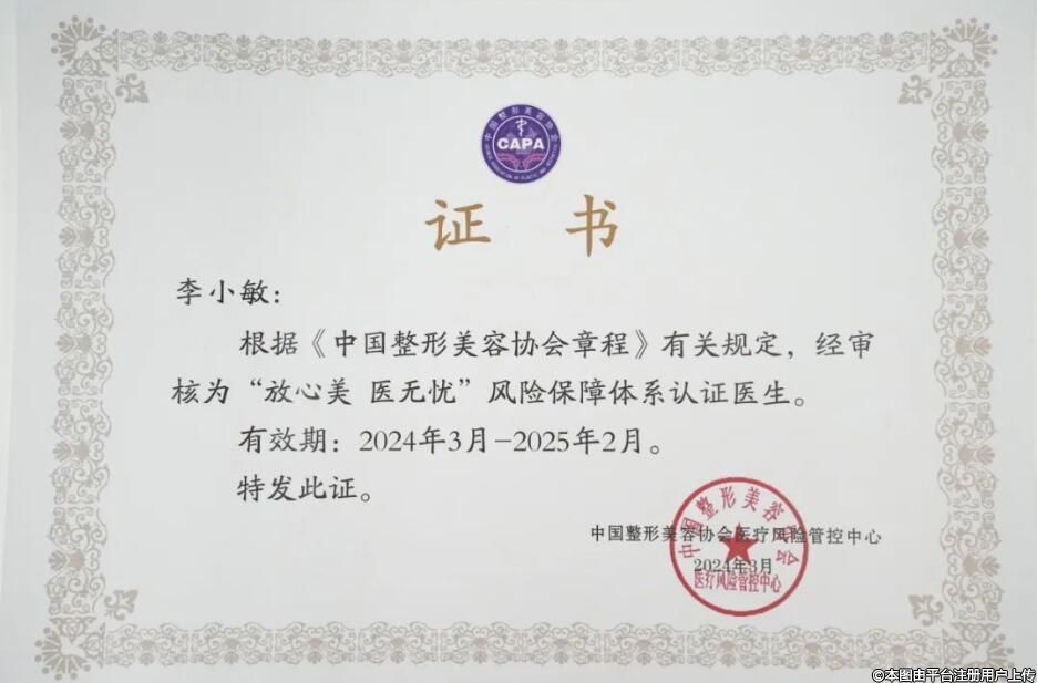 顏術(shù)醫(yī)美沈靜院長、李小敏院長、楊慧院長、江曉玲院長、王敏芳主任、南宇晴主任、黃臺曼主任榮獲“放心美·醫(yī)無憂”【風(fēng)險保障體系認證醫(yī)生】授證。