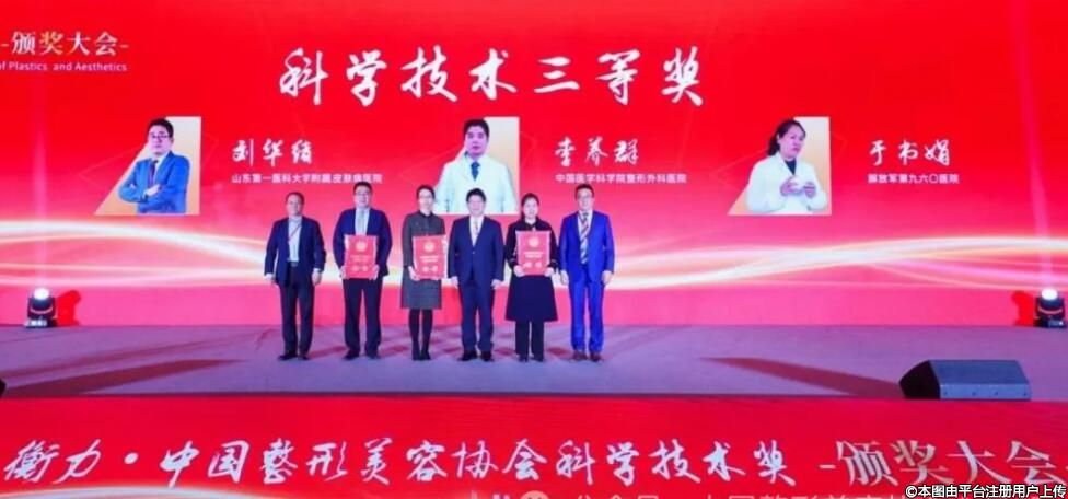 第五屆衡力·中國(guó)整形美容協(xié)會(huì)科學(xué)技術(shù)獎(jiǎng)?lì)C獎(jiǎng)大會(huì),頒發(fā)了科 學(xué)技術(shù)一等獎(jiǎng) 2 項(xiàng)、二等獎(jiǎng) 3 項(xiàng)、三等獎(jiǎng) 3 項(xiàng),該獎(jiǎng)勵(lì)代表了中國(guó)醫(yī) 療整形美容行業(yè)最高科技獎(jiǎng)項(xiàng),旨在獎(jiǎng)勵(lì)醫(yī)療美容基礎(chǔ)研究、應(yīng)用研 究、技術(shù)發(fā)明、科技創(chuàng)新以及國(guó)際科學(xué)技術(shù)合作等領(lǐng)域做出重要貢獻(xiàn)、 取得杰出成就的團(tuán)隊(duì)。本屆科學(xué)技術(shù)獎(jiǎng)是中國(guó)整形美容協(xié)會(huì)與中國(guó)生物蘭州生物技術(shù)開(kāi)發(fā)有限公司合作的項(xiàng)目。