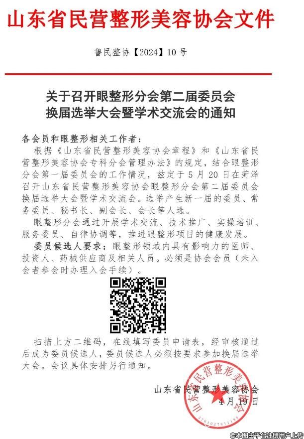 眼整形分會通過開展學(xué)術(shù)交流、技術(shù)推廣、實(shí)操培訓(xùn)、服務(wù)委員、自律協(xié)調(diào)等,推進(jìn)眼整形項(xiàng)目的健康發(fā)展。委員候選人要求:眼整形領(lǐng)域內(nèi)具有影響力的醫(yī)師、投資人、藥械供應(yīng)商及相關(guān)人員。必須是協(xié)會會員(未入會者參會時辦理入會手續(xù))。掃描下方二維碼,在線填寫委員申請表,經(jīng)審核通過后成為委員候選人,委員候選人必須按要求參加換屆選舉大會。