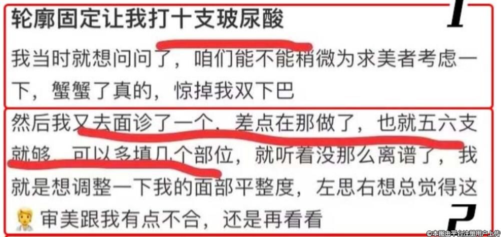 剛剛在網(wǎng)上看到一位網(wǎng)友發(fā)布的帖子(如下),她想做輪廓固定,并面診了3位醫(yī)生,一位讓她在面部打10支,一位讓她打5-6支,一位說3支就夠了。