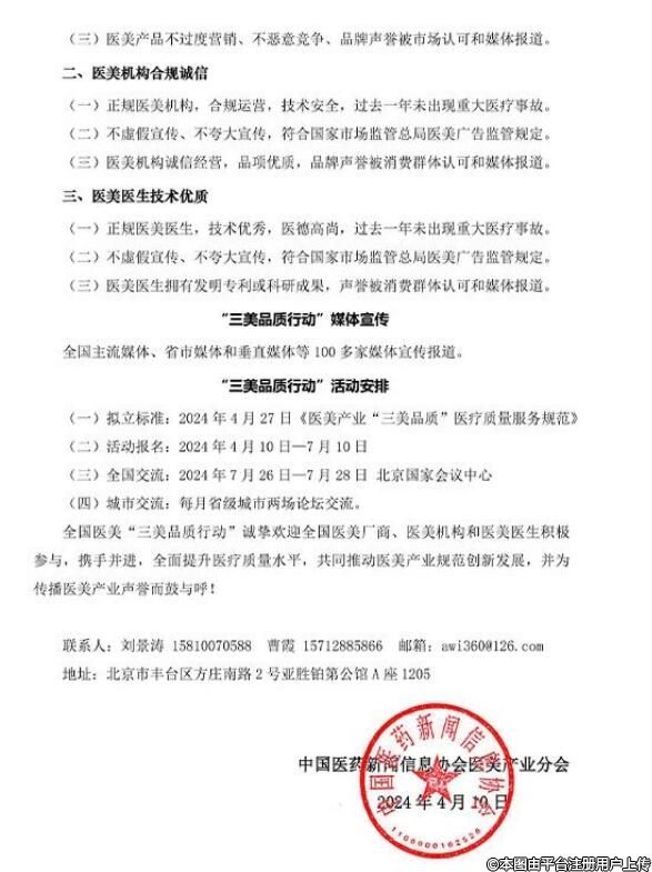 歡迎全國醫(yī)美廠商、醫(yī)美機(jī)構(gòu)和醫(yī)美醫(yī)生積極參與,攜手并進(jìn),全面提升醫(yī)療質(zhì)量水平,共同推動醫(yī)美產(chǎn)業(yè)規(guī)范創(chuàng)新發(fā)展,并為傳播醫(yī)美產(chǎn)業(yè)聲譽(yù)而鼓與呼!