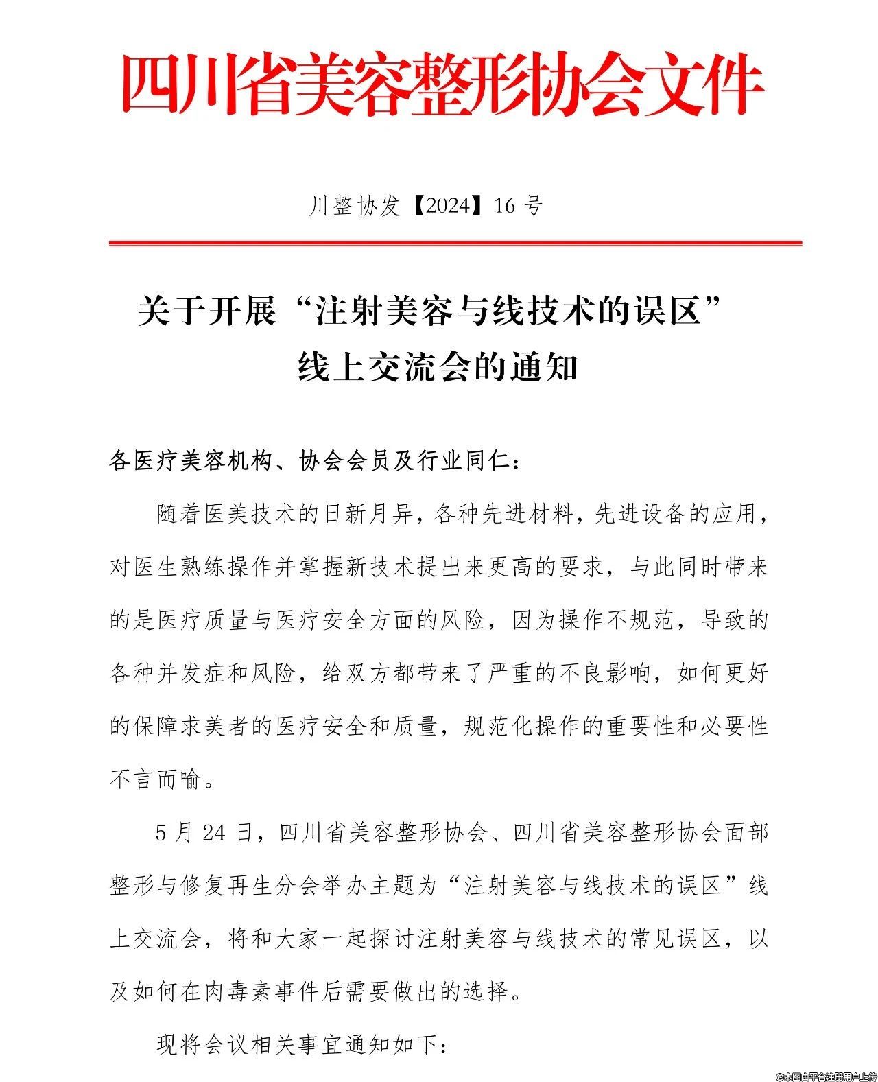 關(guān)于開展“注射美容與線技術(shù)的誤區(qū)”線上交流會的通知