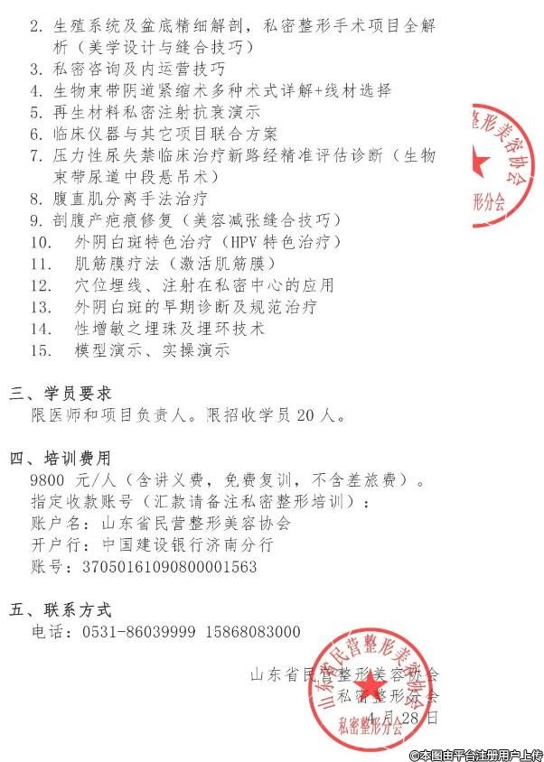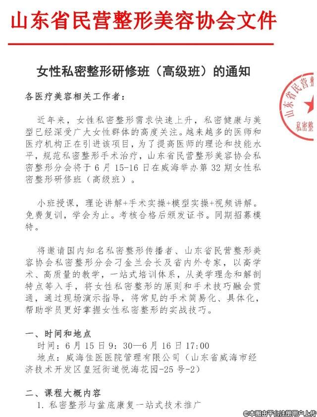 6月15-16日第32期女性私密整形研修班(高級班)的通知