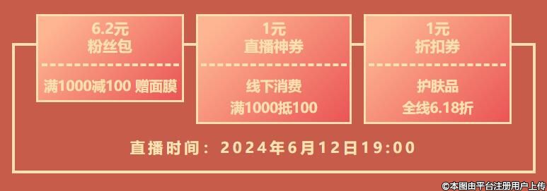 618年中大促,福利四重禮/1元秒殺/買一送一/爆品抄底,鎖定6月12日19:00直播間。