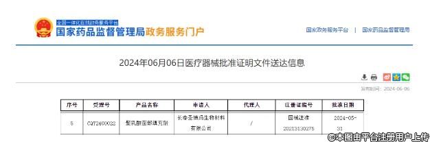6月6日消息,長春圣博瑪生物材料有限公司(以下簡稱“圣博瑪”)關(guān)于“聚乳酸面部填充劑(商品名:艾維嵐Loviselle)”的延續(xù)注冊申請成功獲得NMPA批準(zhǔn)。