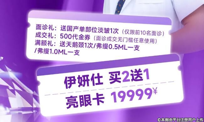 活動(dòng)當(dāng)天消費(fèi)滿額贈(zèng)送天鵝頸1次、弗縵膠原蛋白0.5ml一支/弗縵膠原蛋白1ml一支。