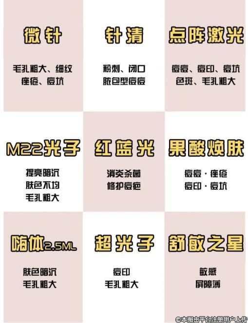 下圖是一些常見(jiàn)的痘痘醫(yī)美項(xiàng)目