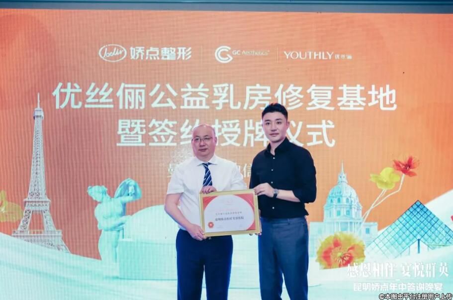此外,昆明嬌點整形在本次活動中正式啟動了“乳你所愿·公益援助”行動,攜手“法國優(yōu)絲儷粉紅絲帶公益乳房”,共同致力于服務有乳房方面困擾的女性。法國優(yōu)絲儷乳房植入體廠家代表、優(yōu)絲儷云南總經(jīng)銷、云南普碩生物科技有限公司總經(jīng)理尚燁向昆明嬌點授予了“優(yōu)絲儷粉公益乳房修復基地”的榮譽牌匾。