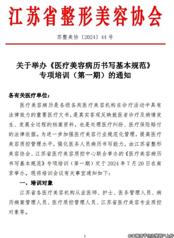 醫(yī)療美容病歷是各級(jí)各類醫(yī)療美容機(jī)構(gòu)在診療活動(dòng)中具有法律效力的重要醫(yī)療文書,是真實(shí)客觀反映就醫(yī)者診療及病情發(fā)生、發(fā)展全過程的檔案資料,也是處理醫(yī)療糾紛、醫(yī)療保險(xiǎn)賠付的法律依據(jù)。為進(jìn)一步加強(qiáng)醫(yī)療美容行業(yè)規(guī)范化管理,提高醫(yī)療美容質(zhì)控管理水平,強(qiáng)化醫(yī)務(wù)人員病歷書寫能力,由江蘇省整形美容協(xié)會(huì)、江蘇省醫(yī)療美容質(zhì)控中心聯(lián)合舉辦的《醫(yī)療美容病歷書寫基本規(guī)范》專項(xiàng)培訓(xùn)(第一期)定于2024年7月20日在南京舉辦?,F(xiàn)將培訓(xùn)會(huì)議有關(guān)事宜通知如下: