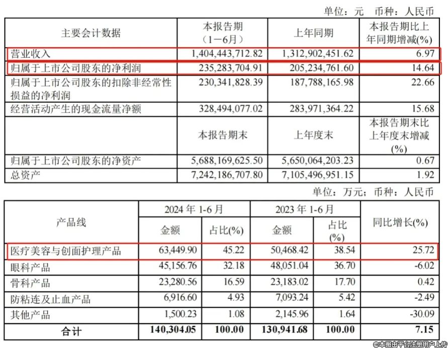 2024年8月17日,昊海生科(688366.SH)發(fā)布2024年半年度報告,公司上半年營業(yè)收入14.04億元,同比增長6.97%;歸屬于上市公司股東的凈利潤達(dá)到2.35億元,同比增長14.64%。