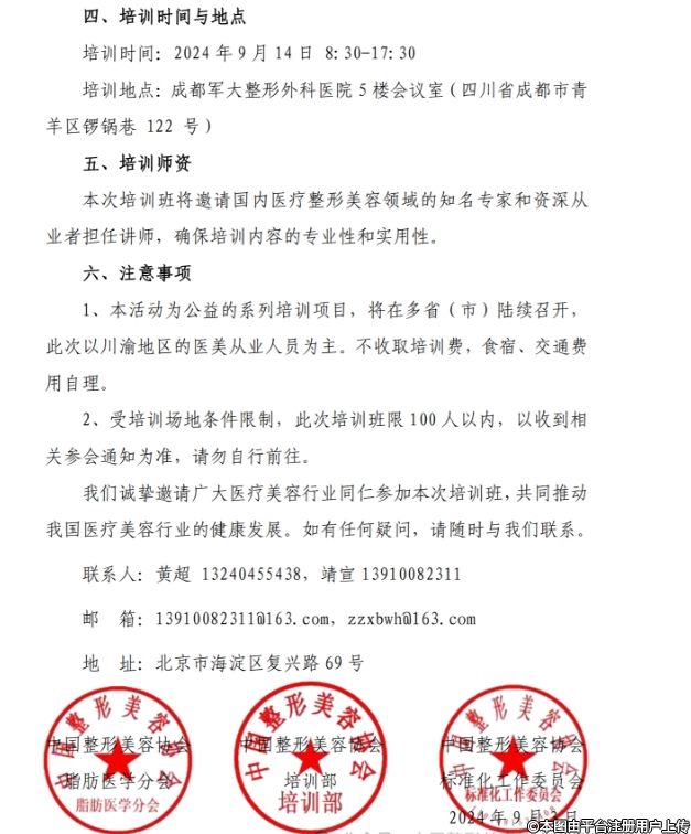 我們誠(chéng)摯邀請(qǐng)廣大醫(yī)療美容行業(yè)同仁參加本次培訓(xùn)班,共同推動(dòng)我國(guó)醫(yī)療美容行業(yè)的健康發(fā)展。如有任何疑問(wèn),請(qǐng)隨時(shí)與我們聯(lián)系。