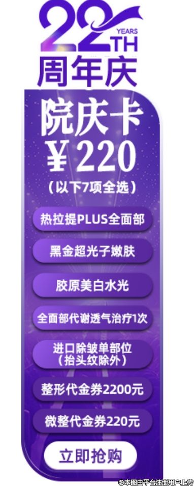 ★整形到院禮:新客到院咨詢整形項(xiàng)目,即可獲贈(zèng)100元盒馬購(gòu)物卡/行李箱